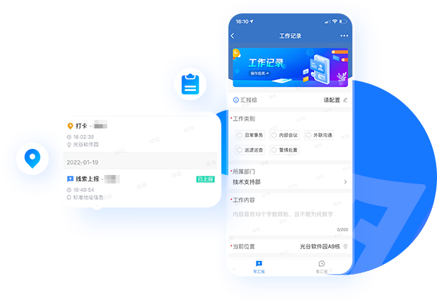 工作記錄是開放至全省民輔警的工作日志、記錄匯報應用,使基層輔警同志工作內(nèi)容“有記錄,有匯總,能反饋”。當天的工作內(nèi)容自動匯總隔天日報發(fā)送領(lǐng)導,監(jiān)管記錄不脫節(jié)。